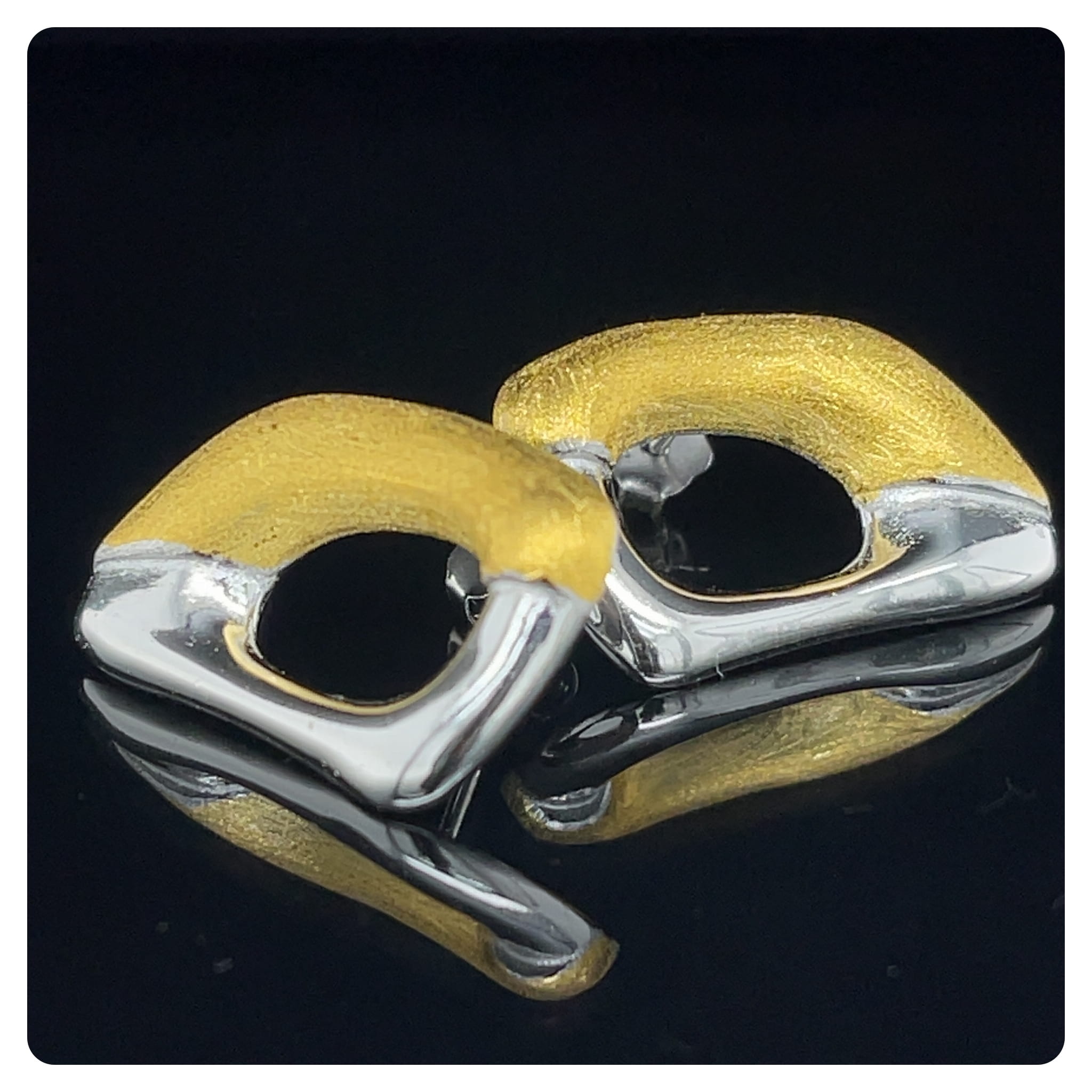 Dwukolorowe Kolczyki Srebrne 925 Kontury Prostokąty Pozłacane I Rodowane