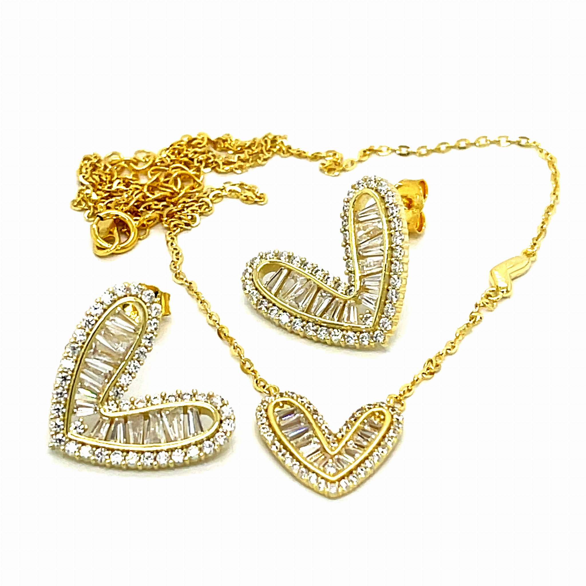 Kolczyki serca z cyrkoniami ze srebra pozłacanego