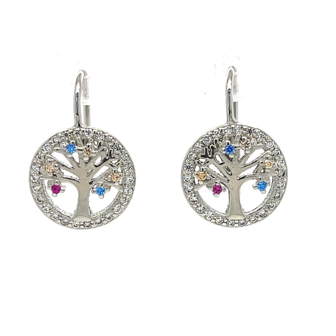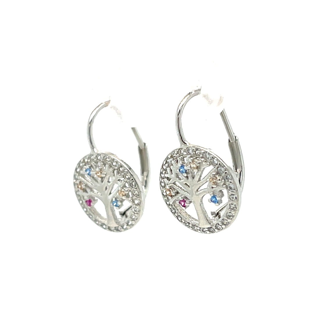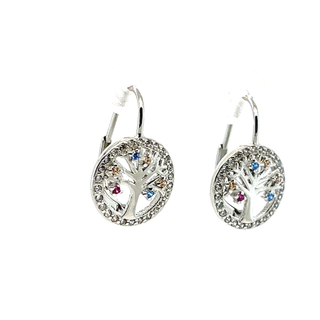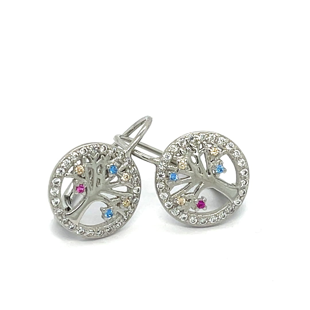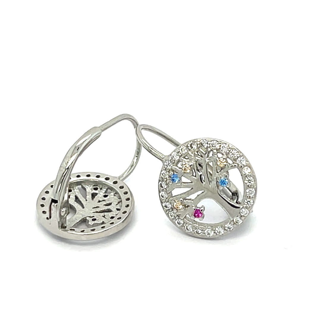 Kolczyki koła z drzewkiem i delikatnymi cyrkoniami, srebro 925
