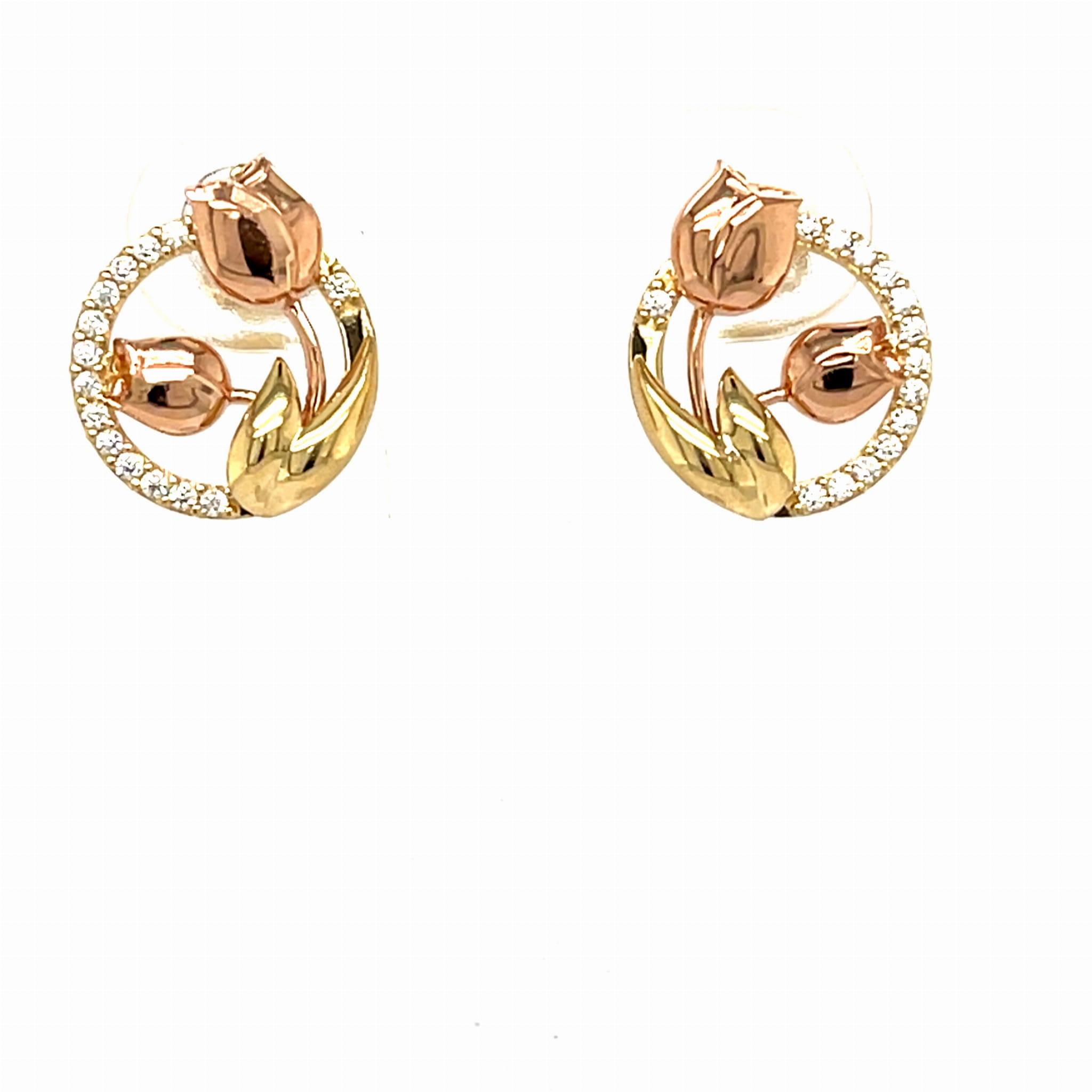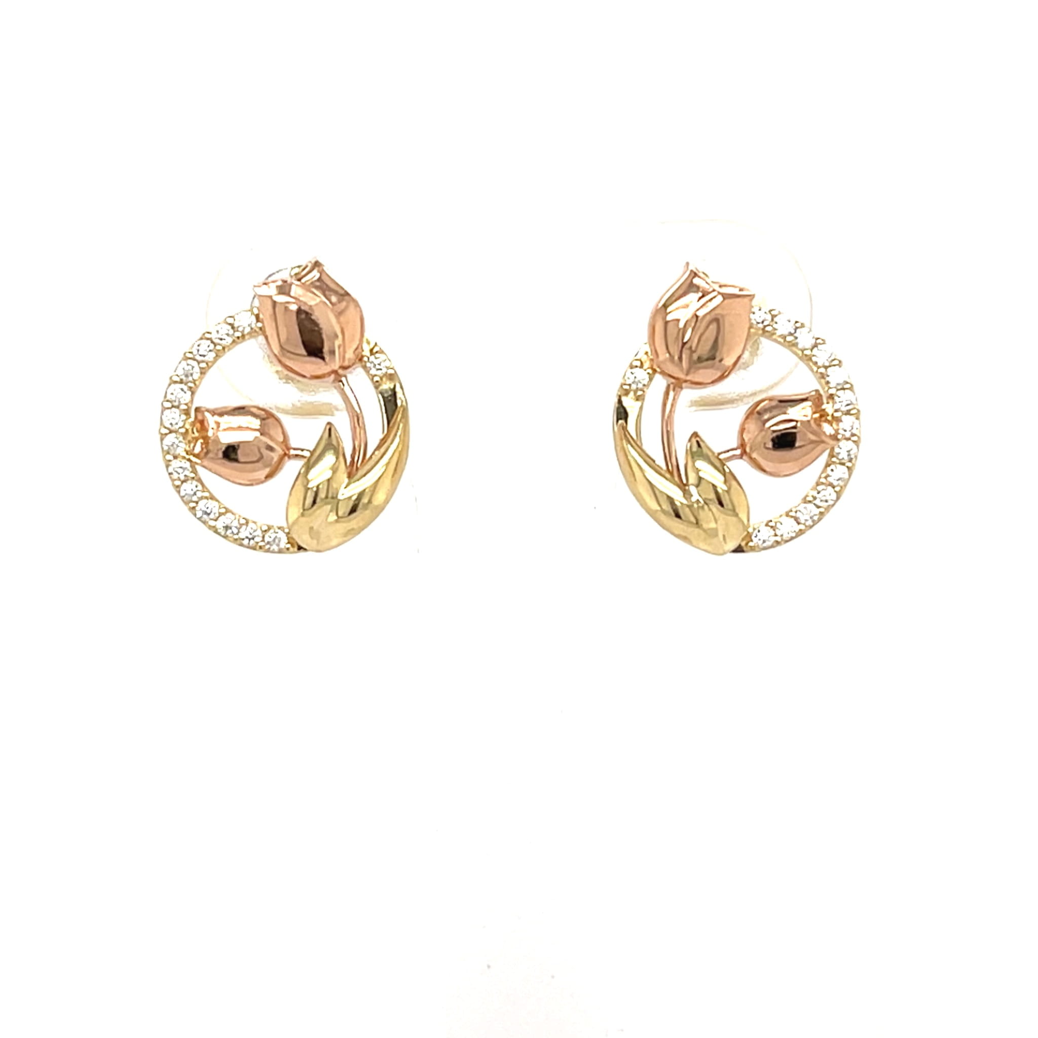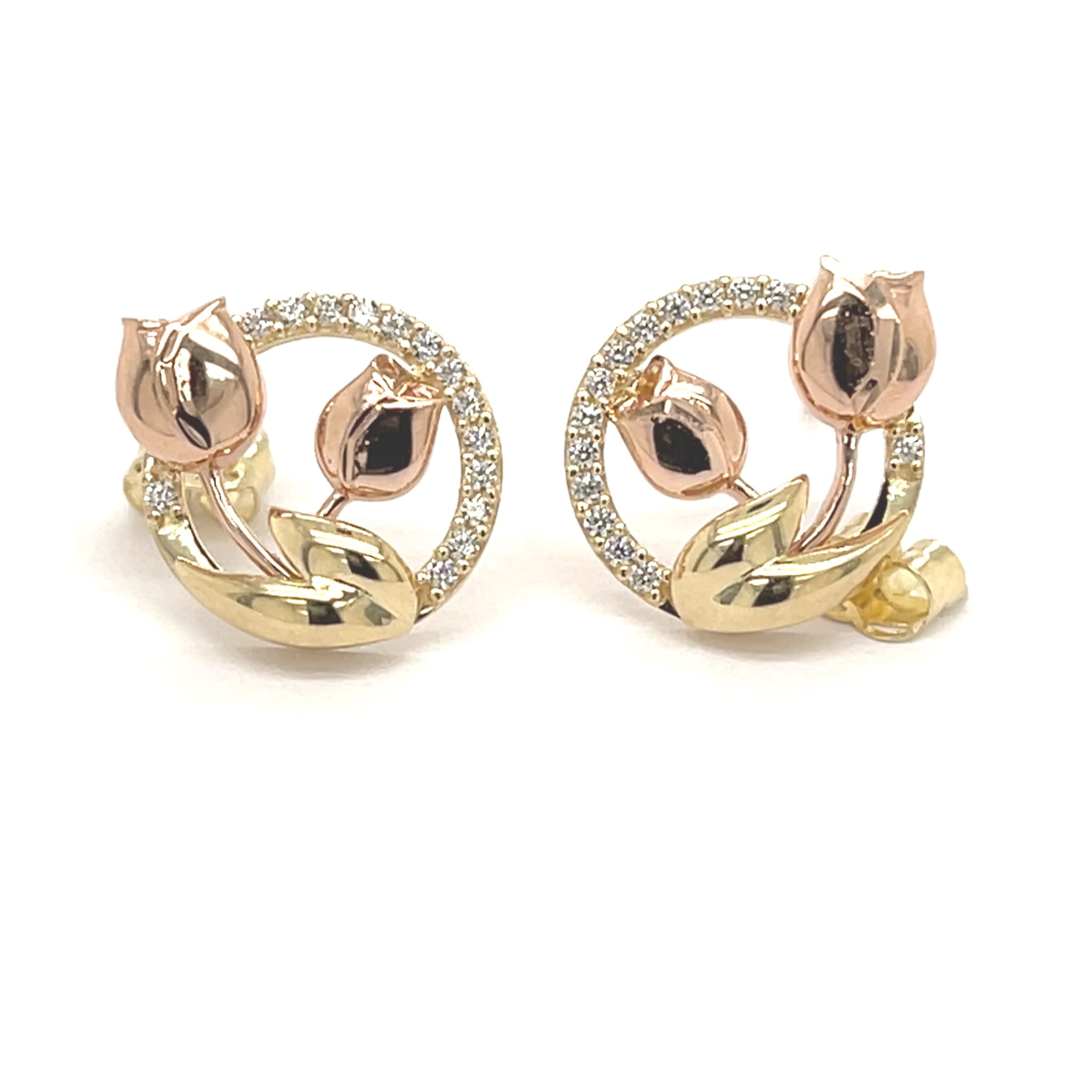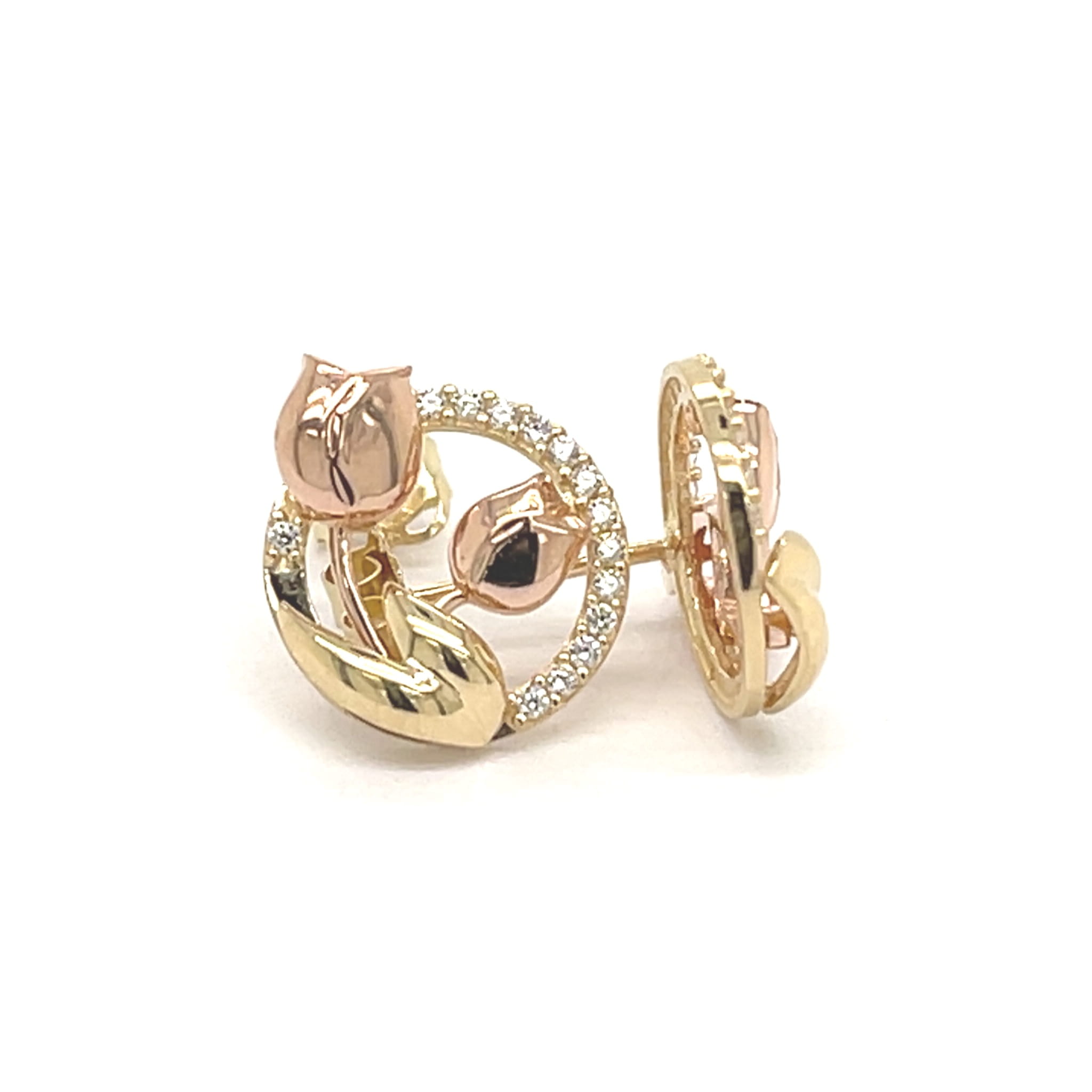 Złote Kolczyki Tulipany W Kole 585 Różowe I Żółte Złoto Cyrkonie