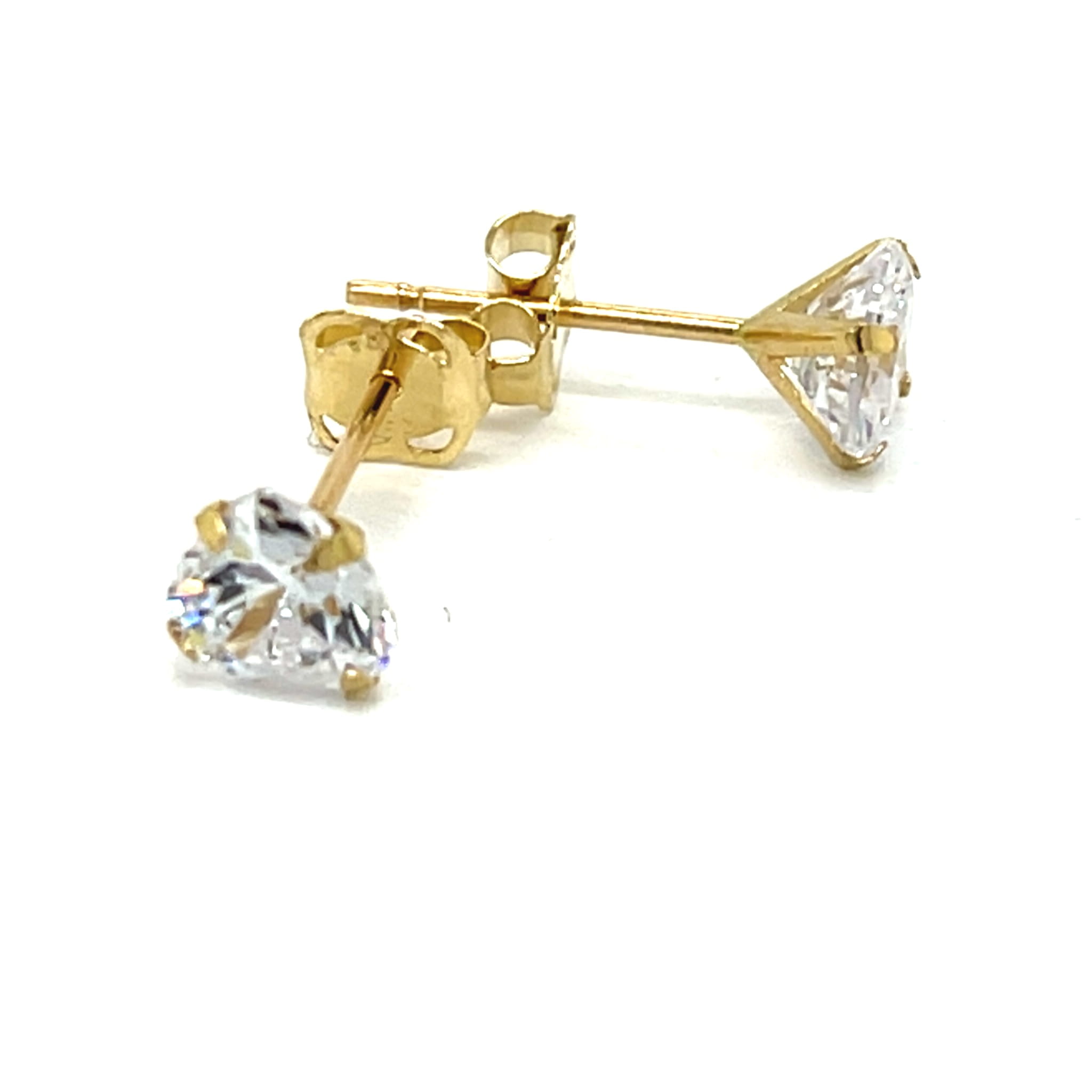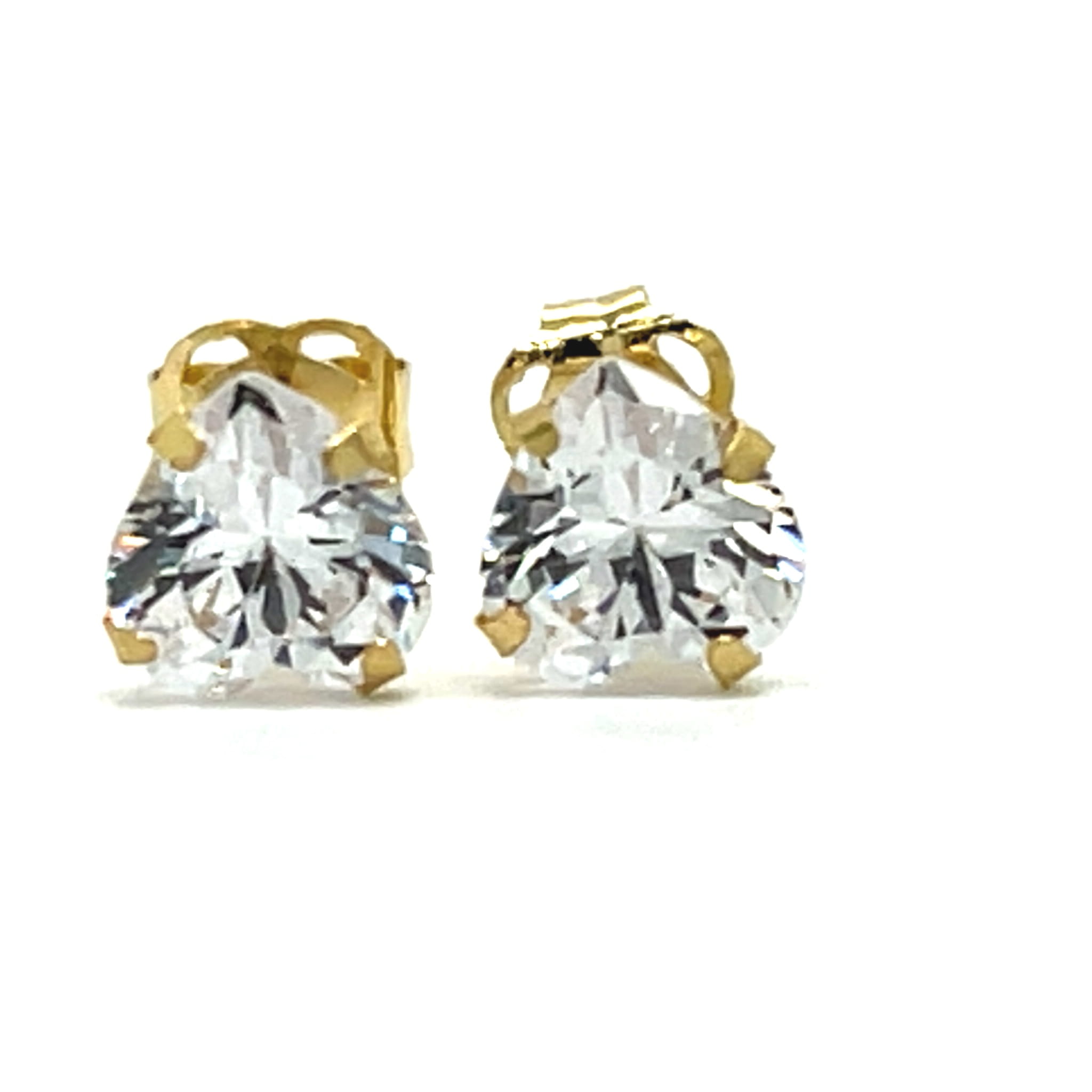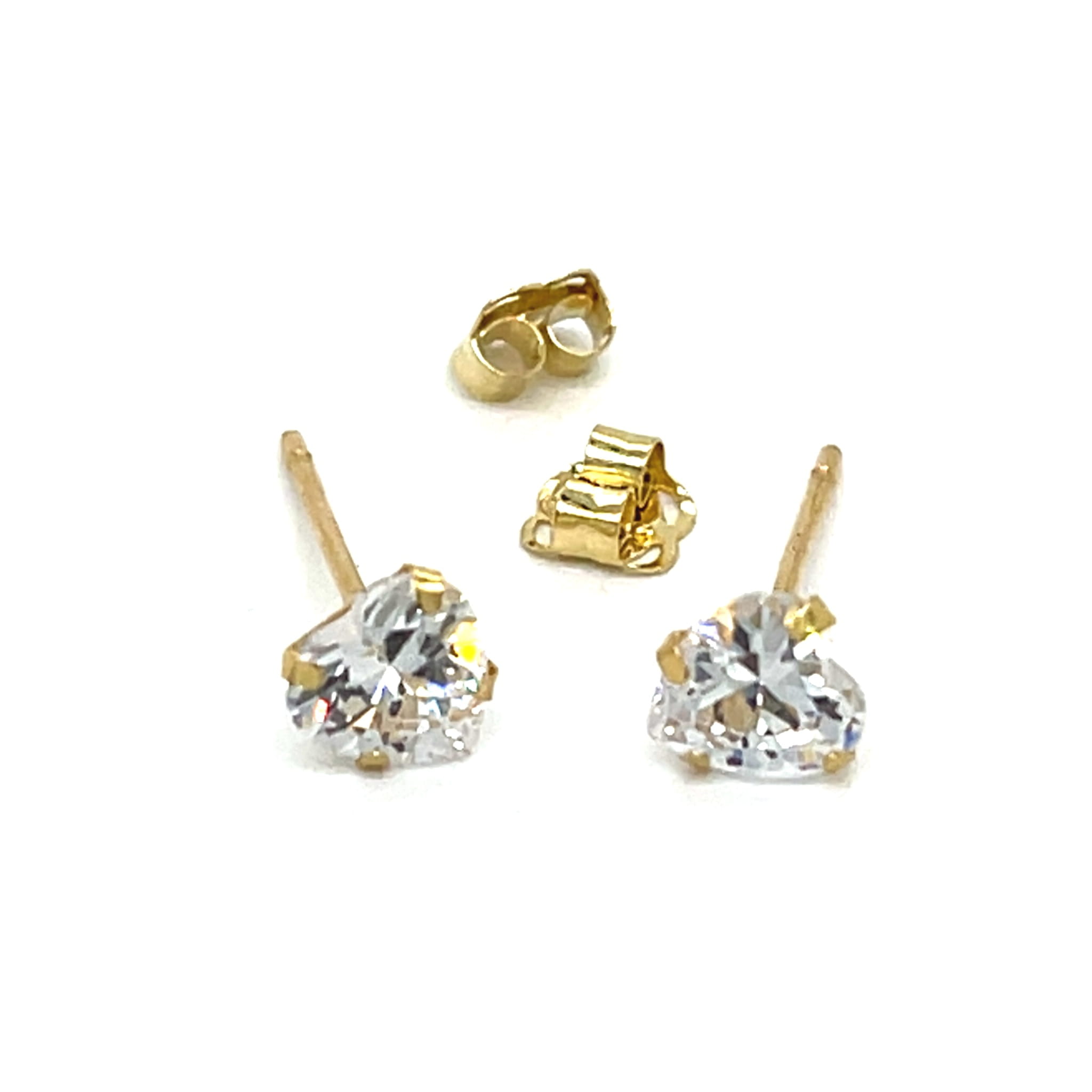 Złote kolczyki sztyfty 585 serduszka w całości z białymi cyrkoniami