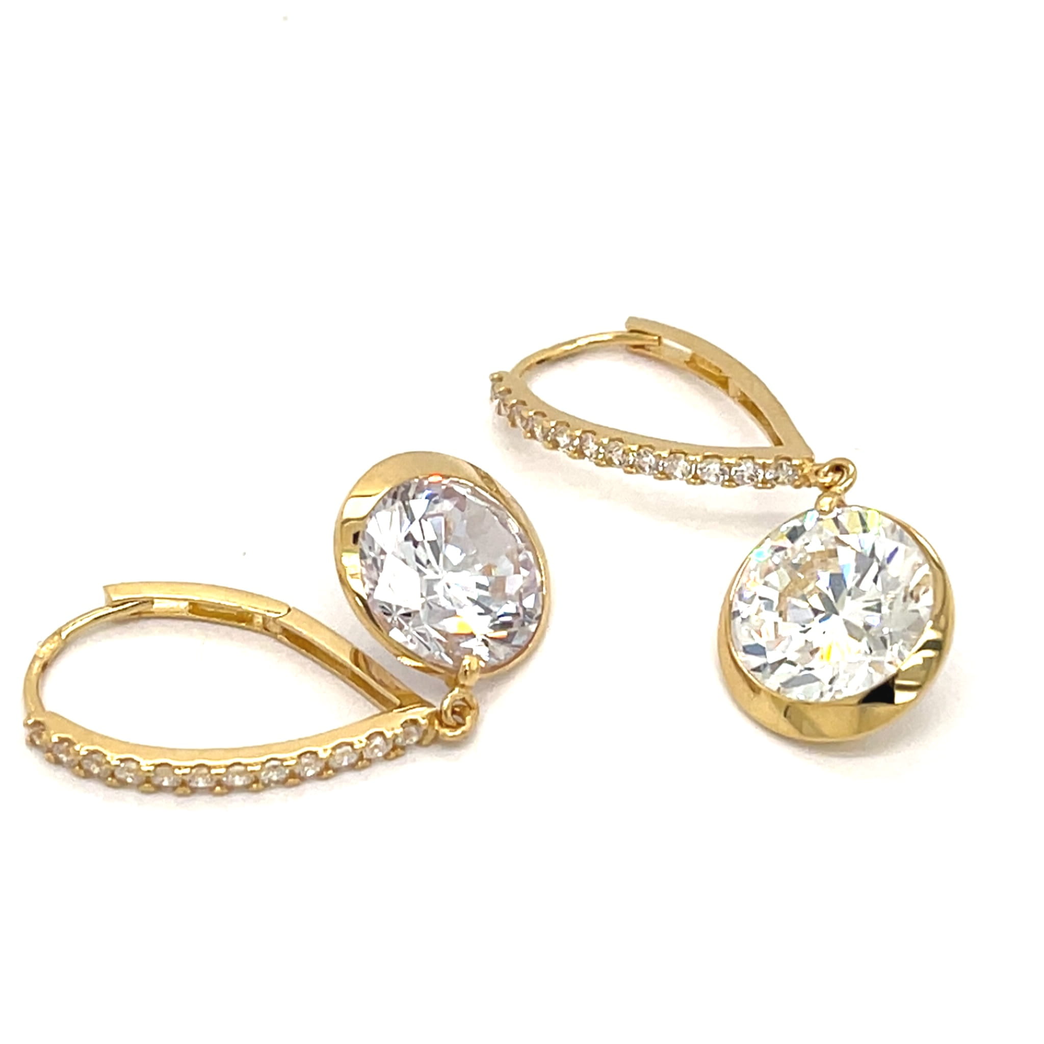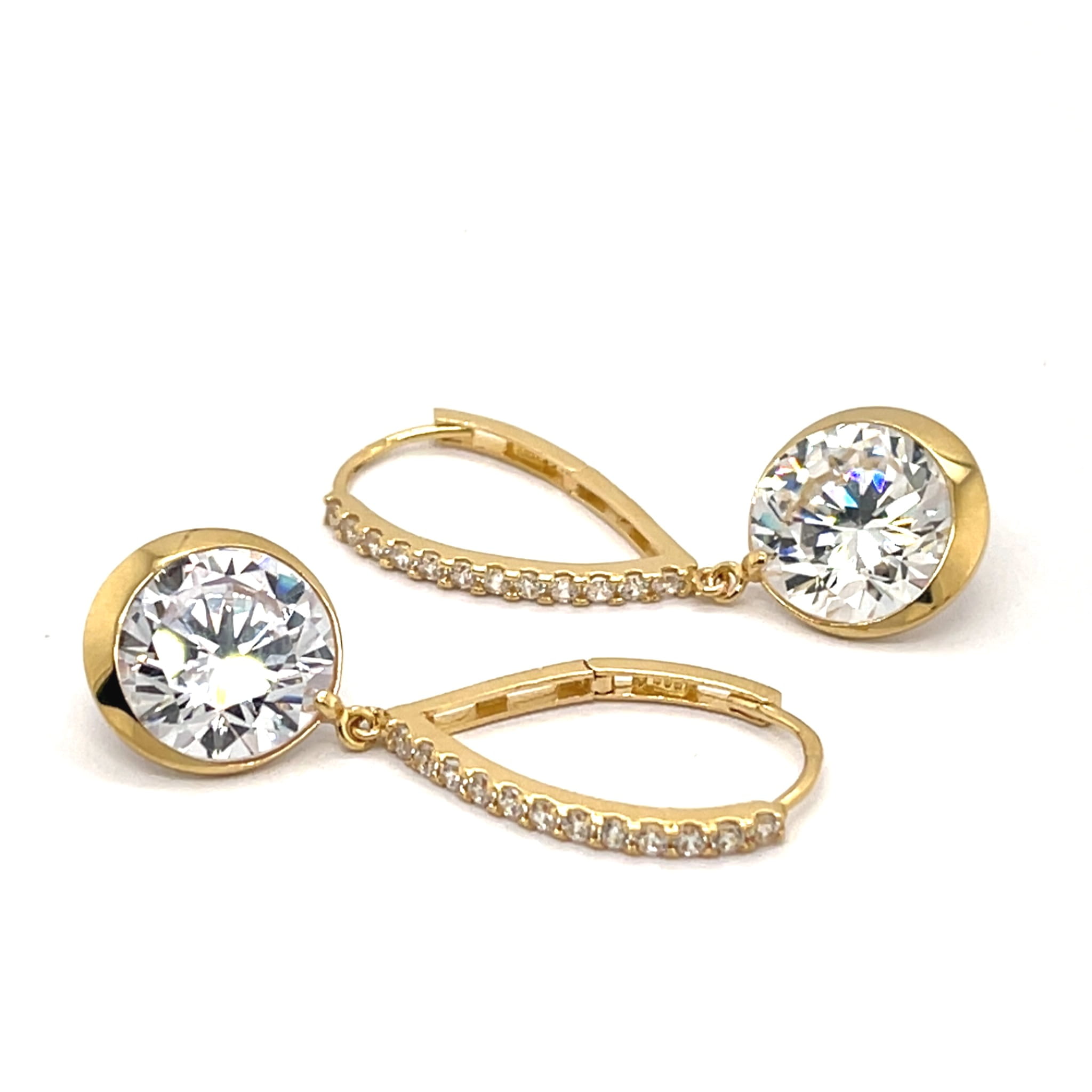 Ekskluzywne Złote Kolczyki Wiszące Pr. 585 Cyrkonia i Bigiel z Cyrkoniami