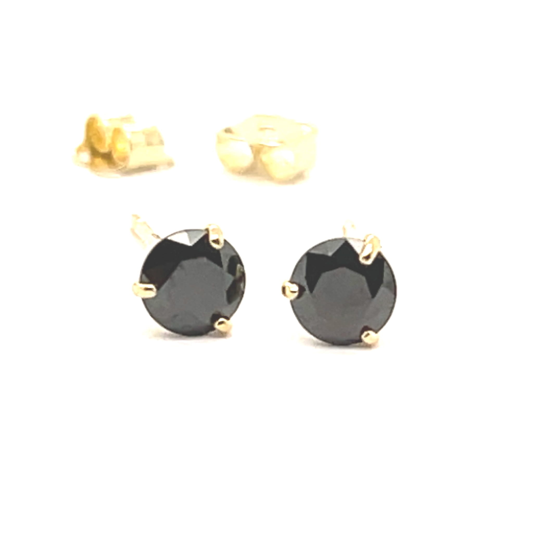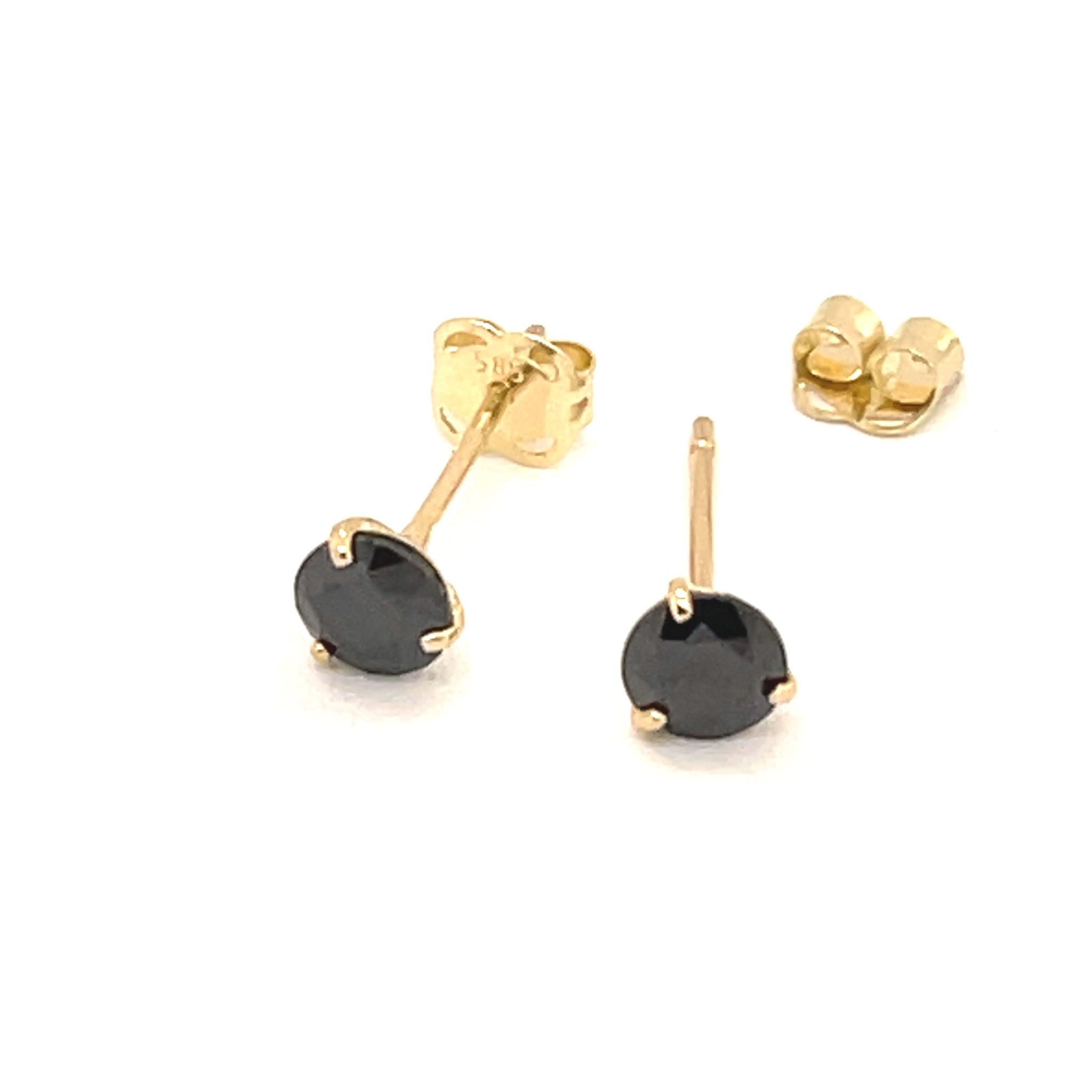 Złote Kolczyki Sztyfty 585 Czarna Cyrkonia Okrągła Minimalistyczne