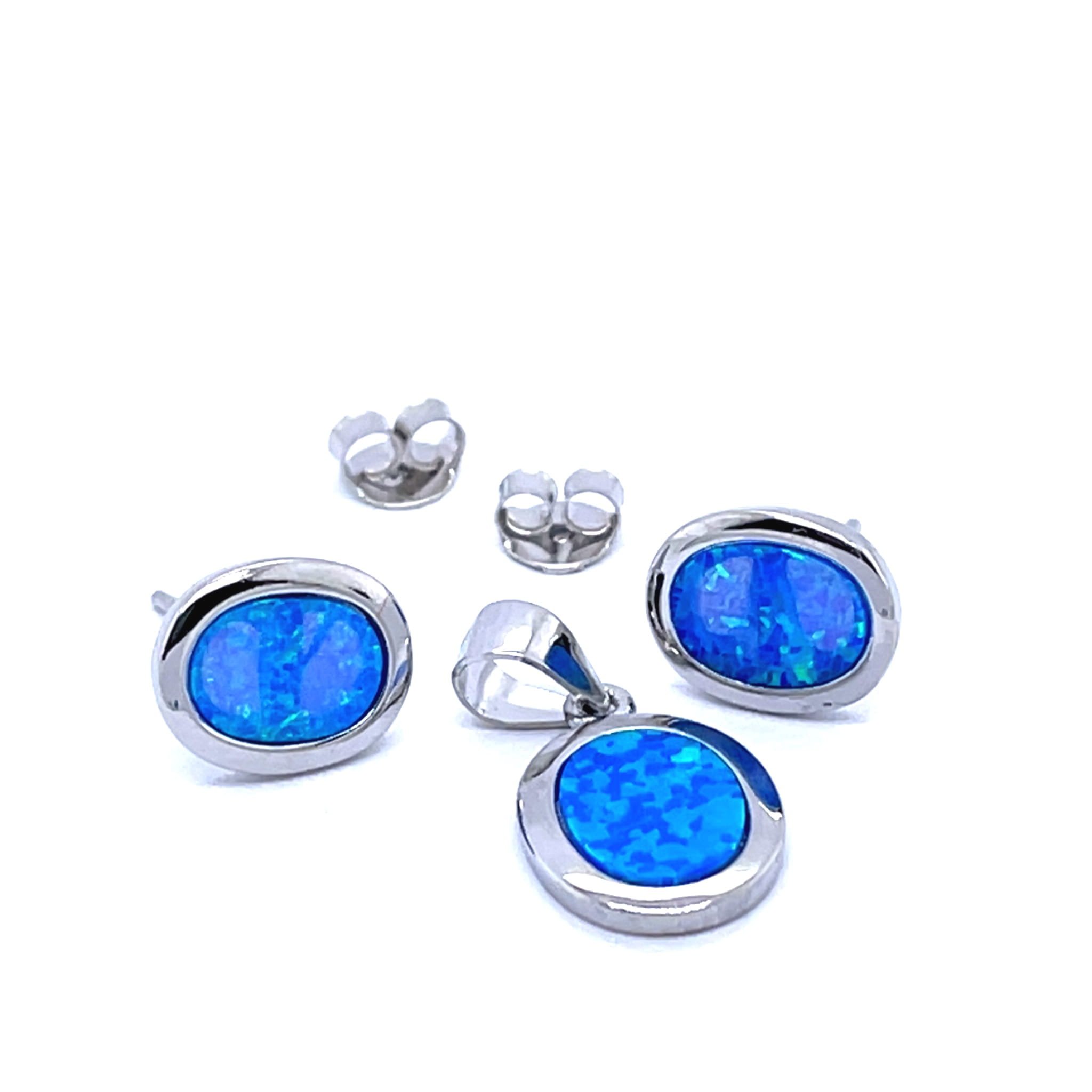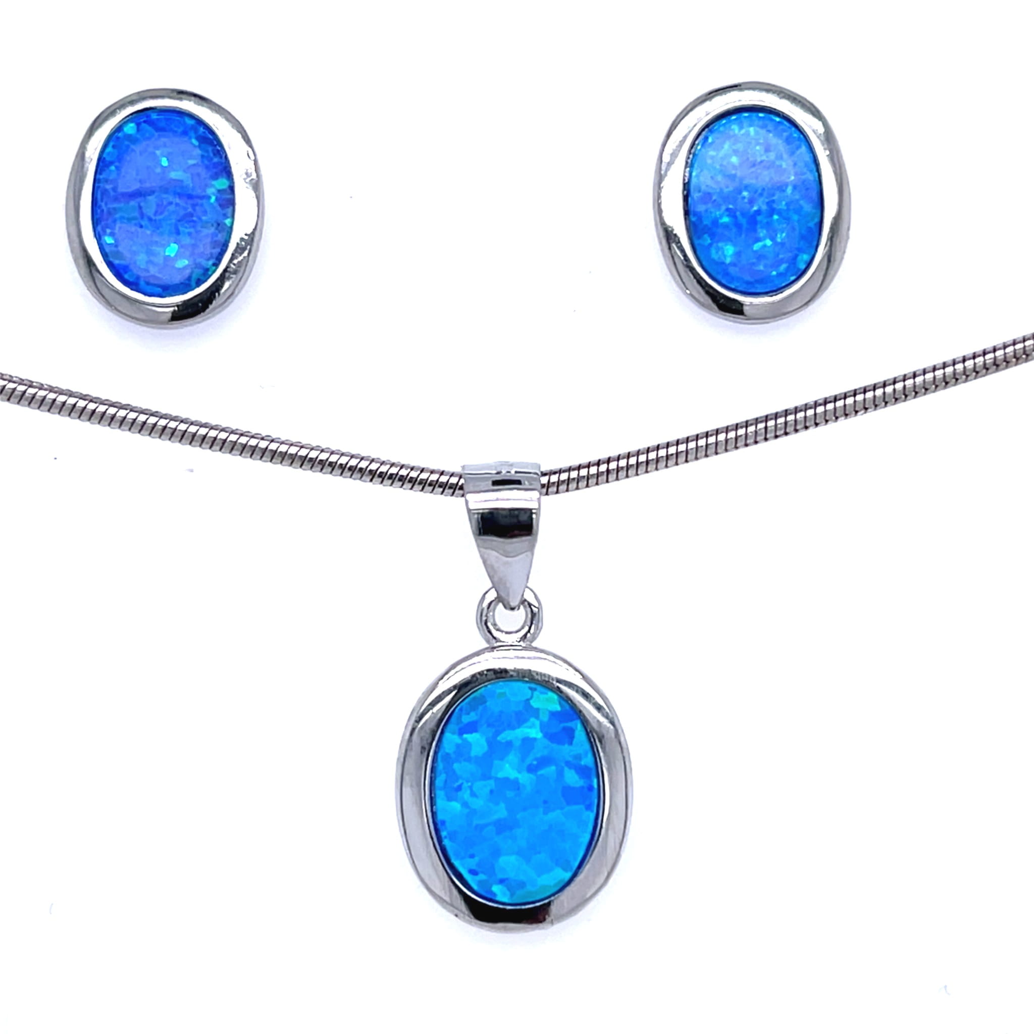 Minimalistyczny Zestaw Biżuterii Owalny Niebieski Opal Srebro Rodowane 925