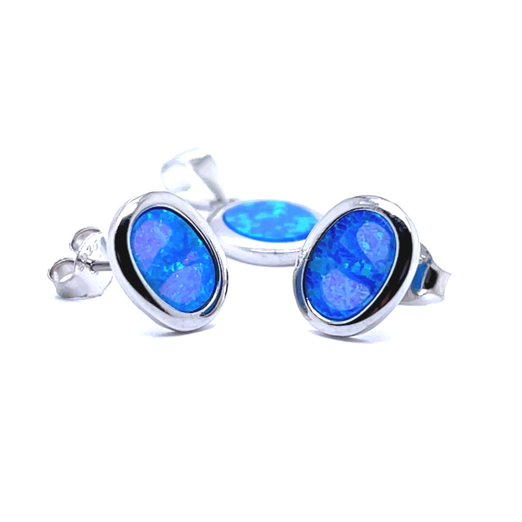Materiał: Srebro rodowane, opal niebieski