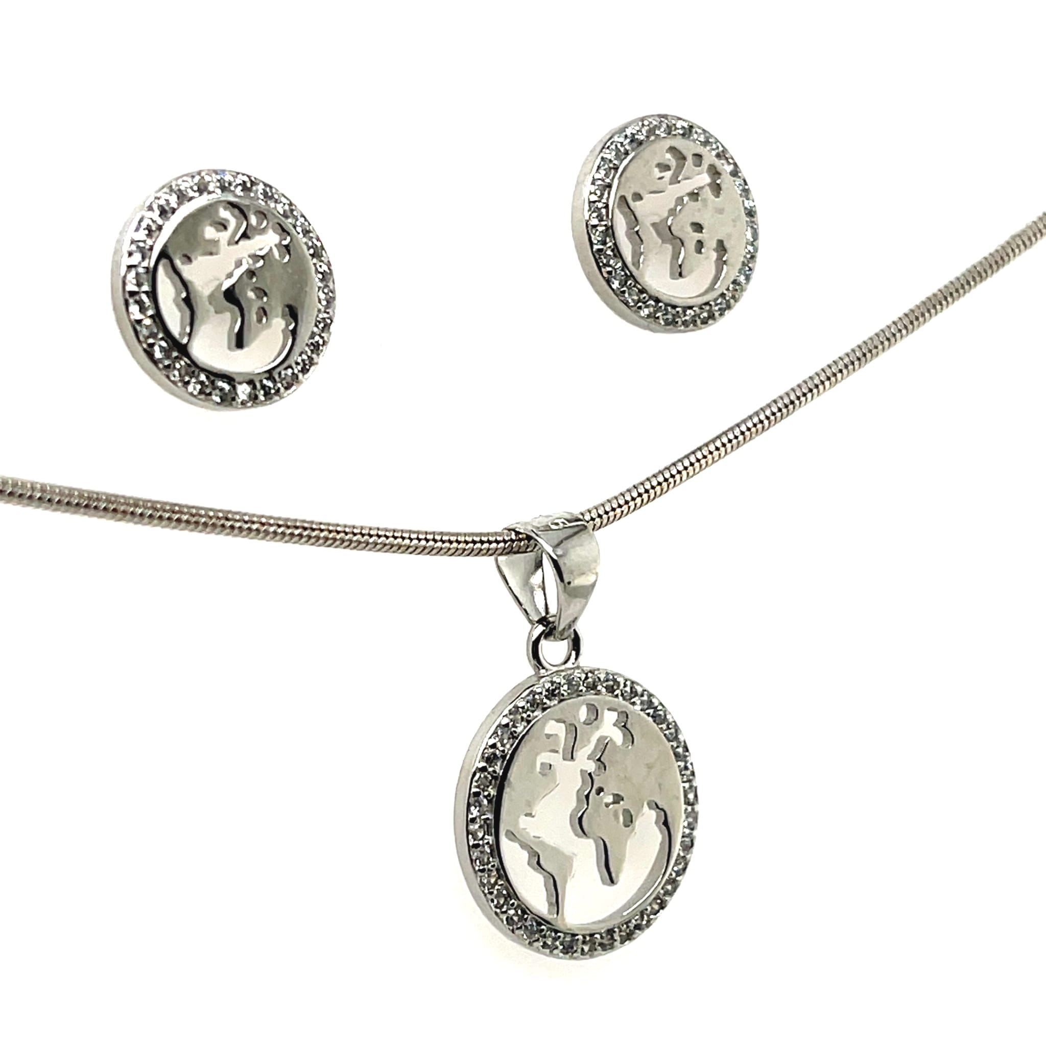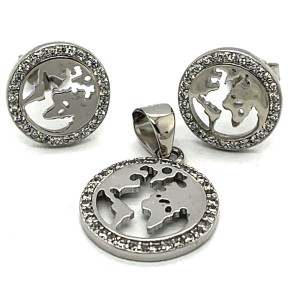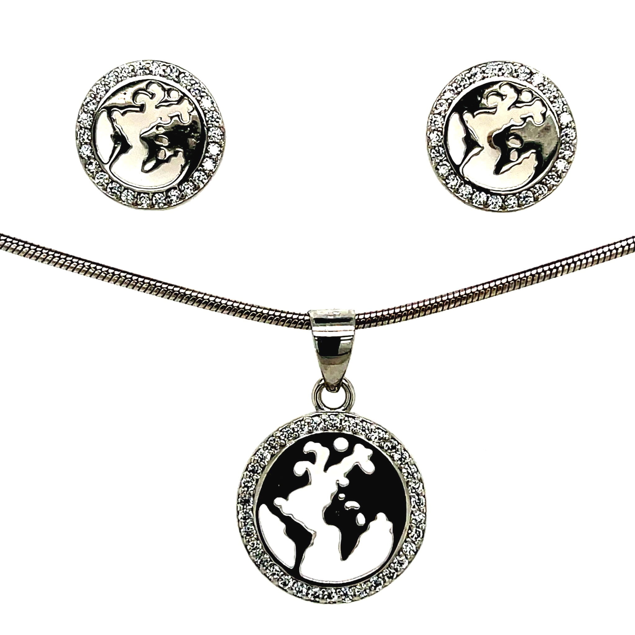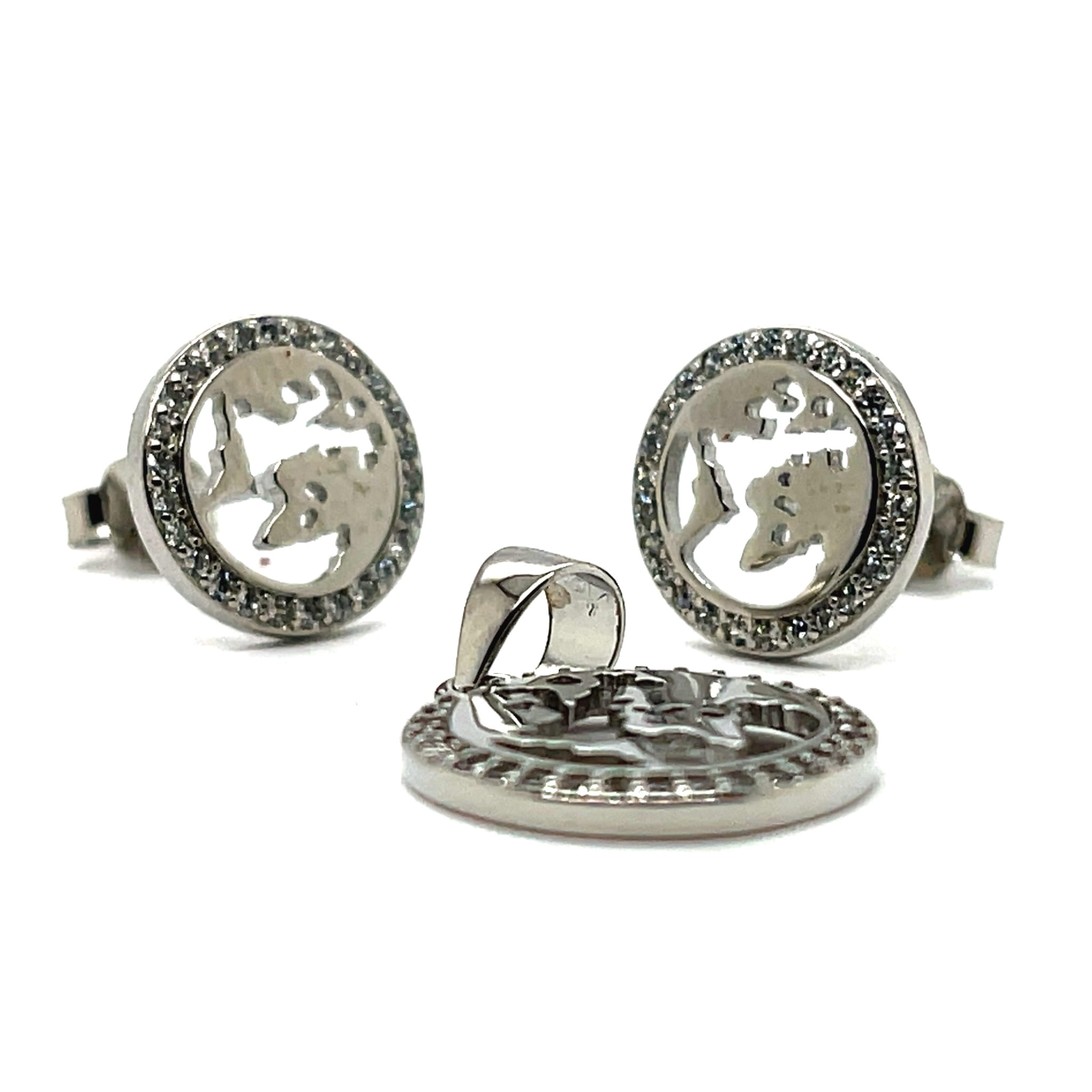 Srebrny Komplet Biżuterii Kontynenty Ziemi Cyrkonie Rodowany 925
