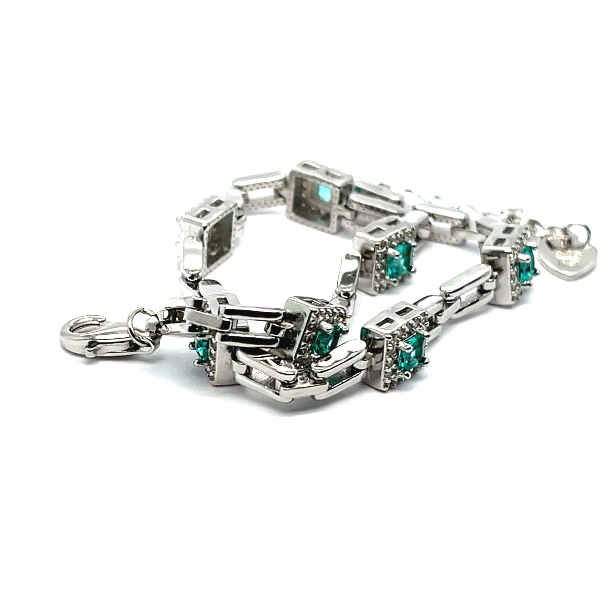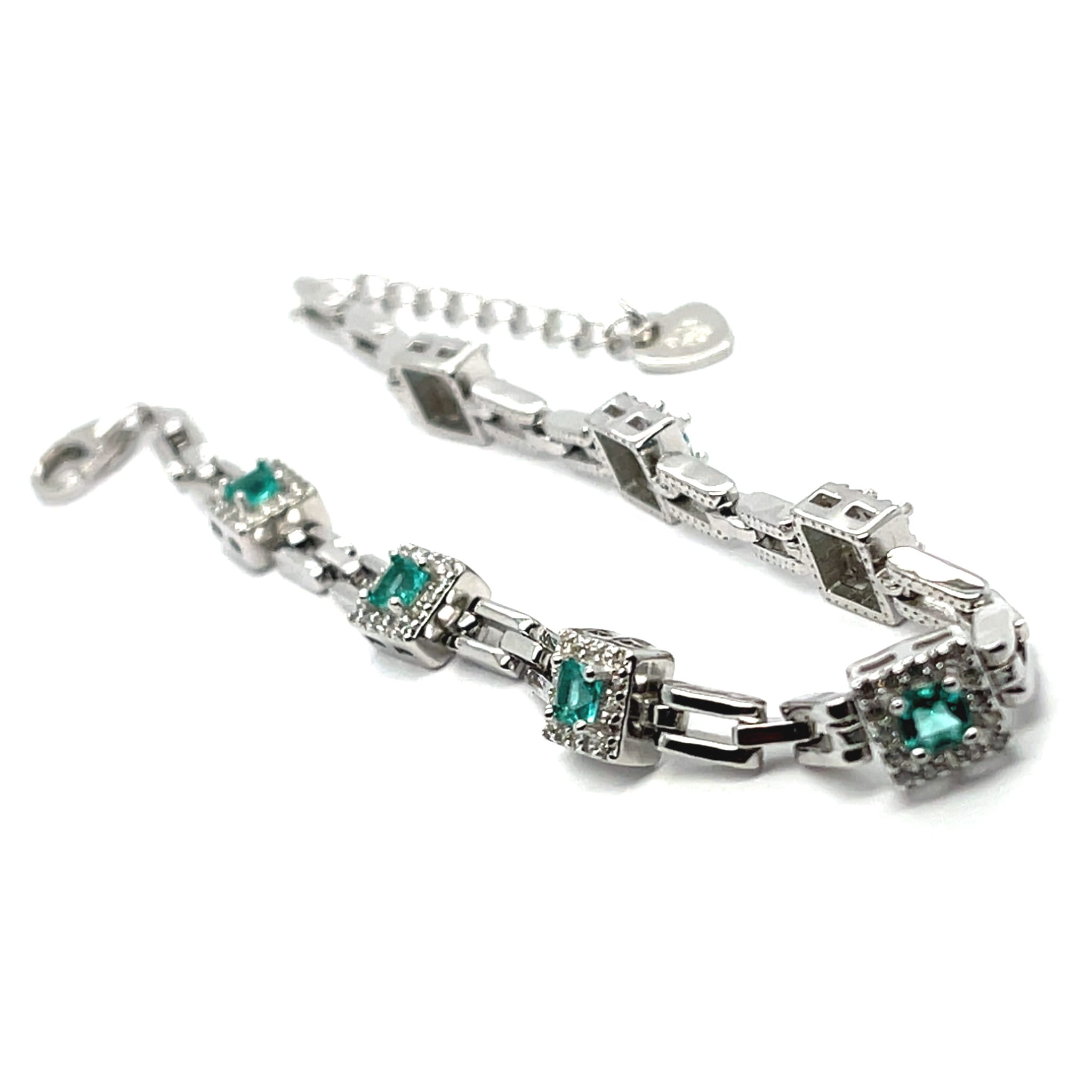 Bransoletka srebrna modułowa z zielonymi kamieniami