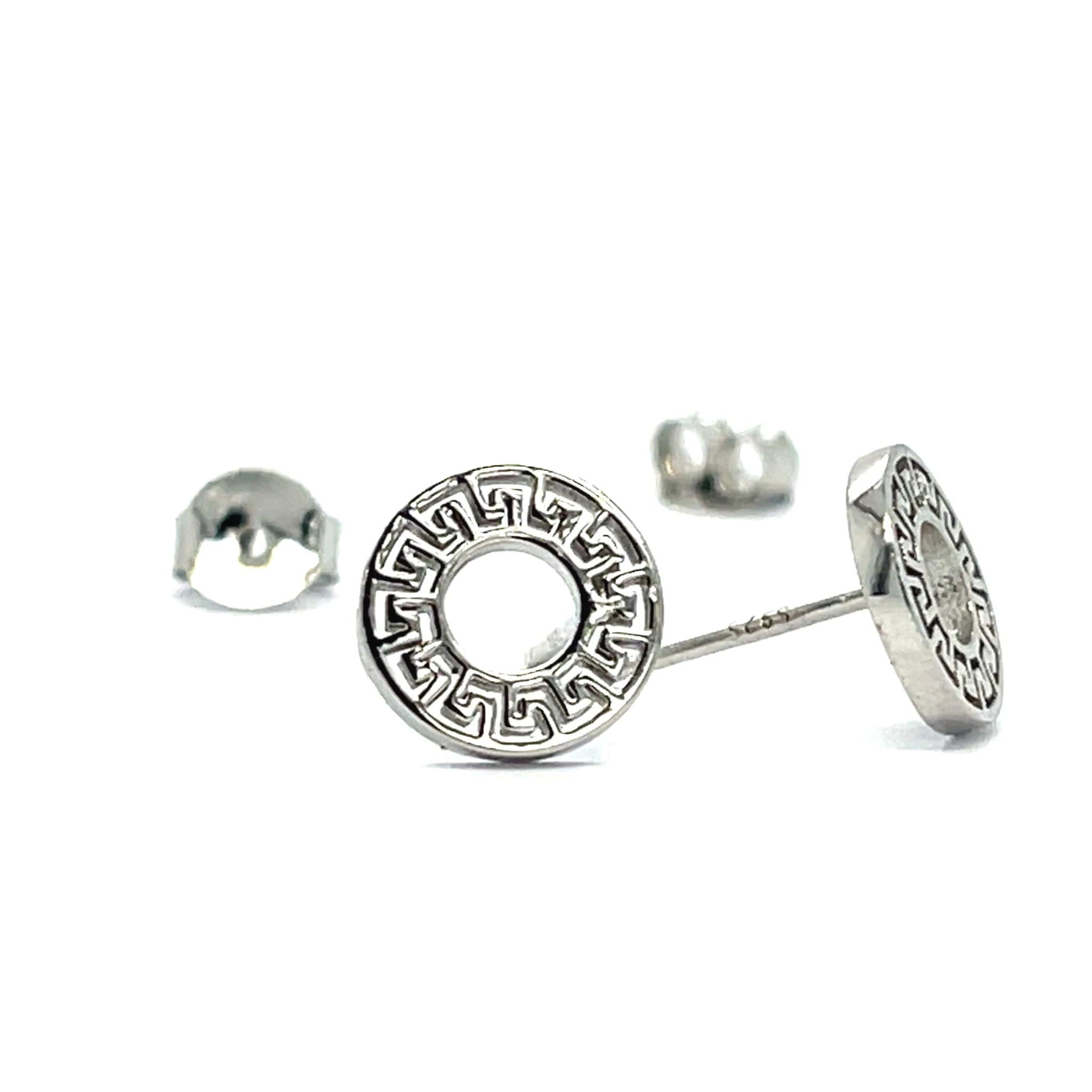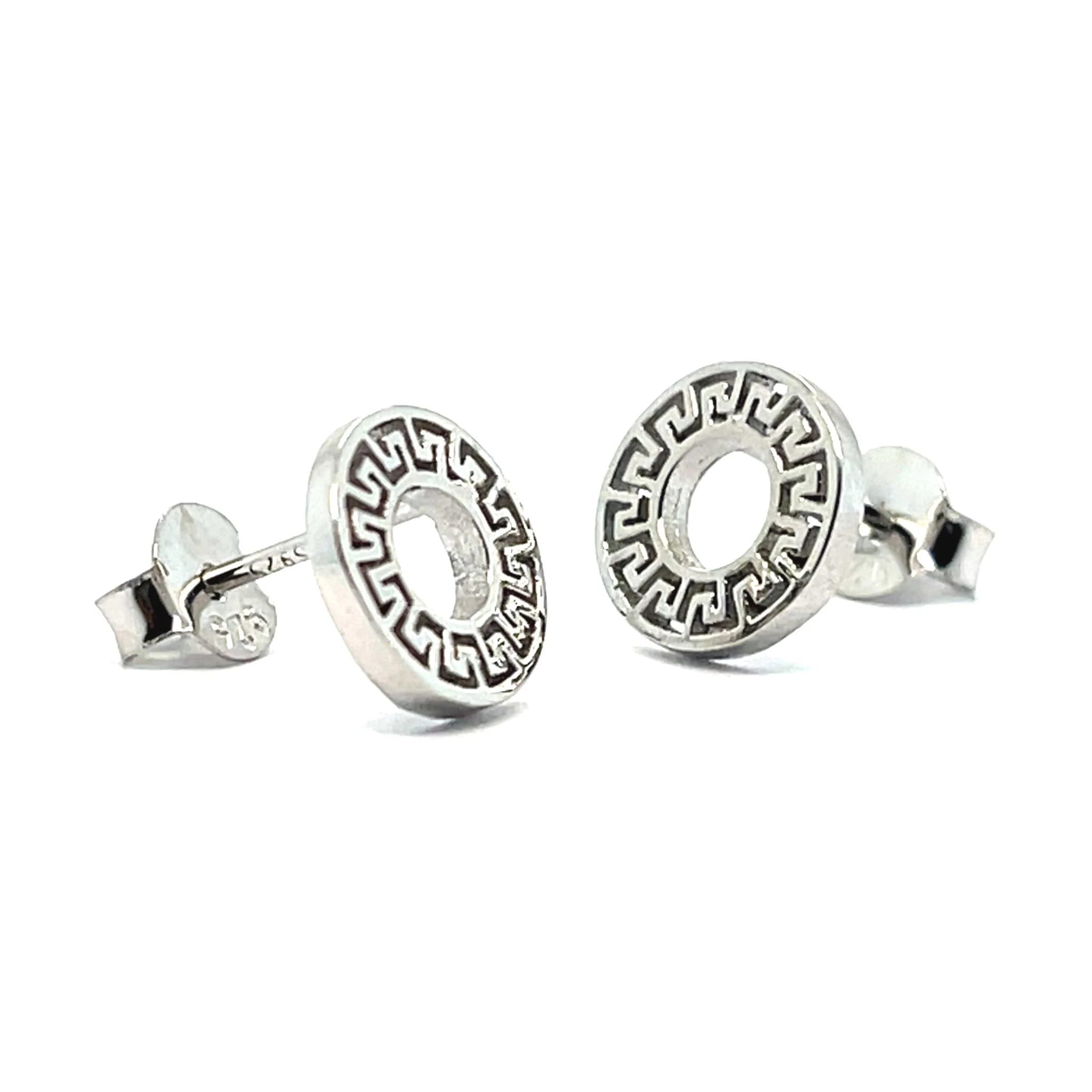 Geometryczne kolczyki koła z greckim zdobieniem srebro 925