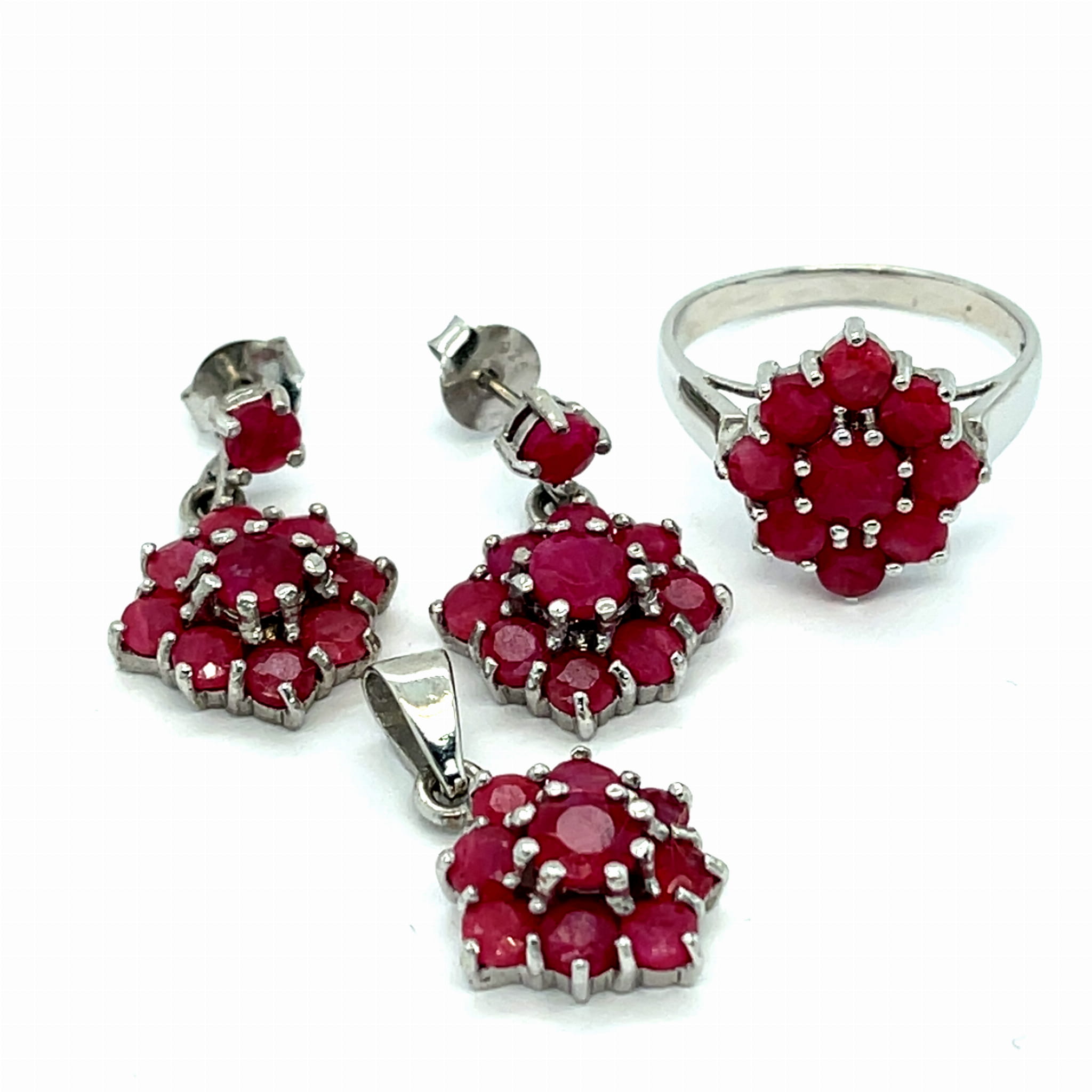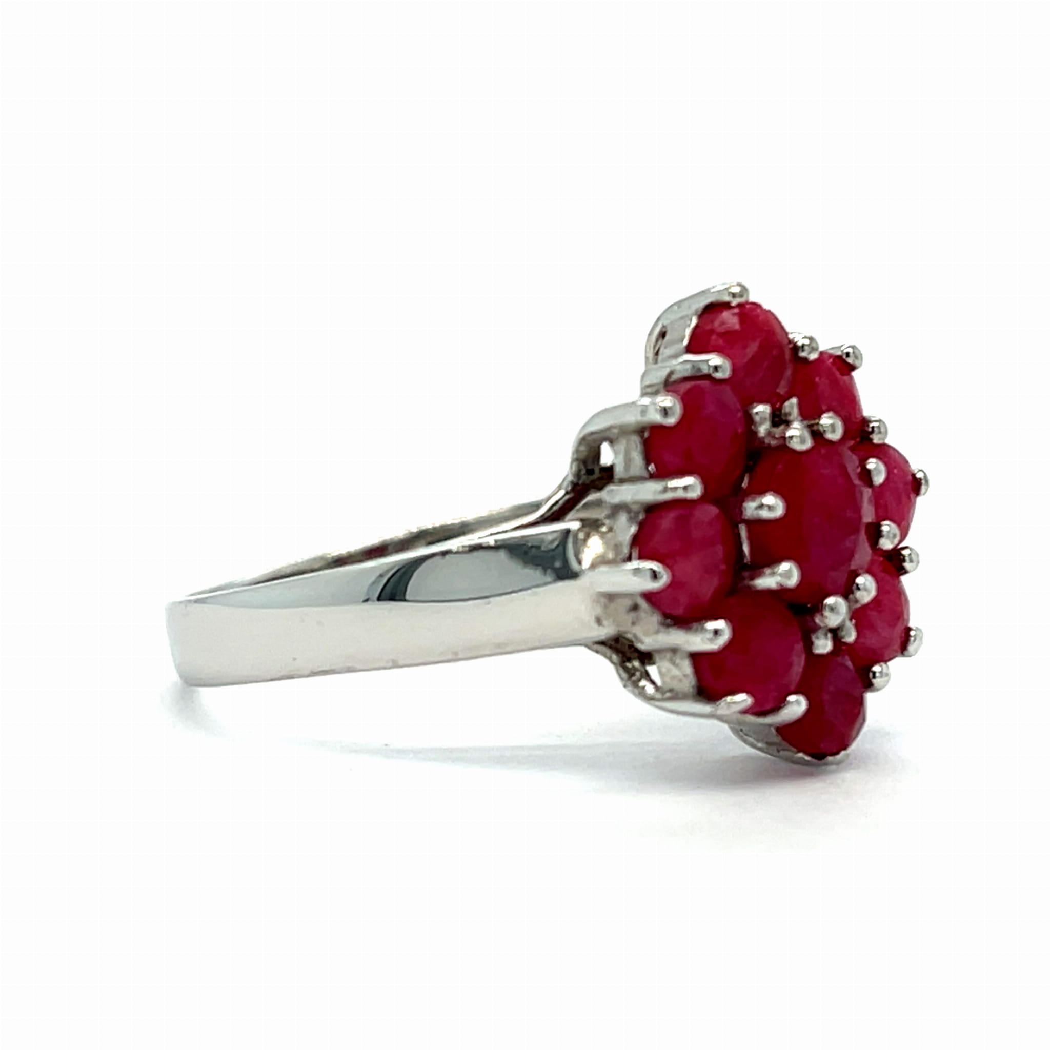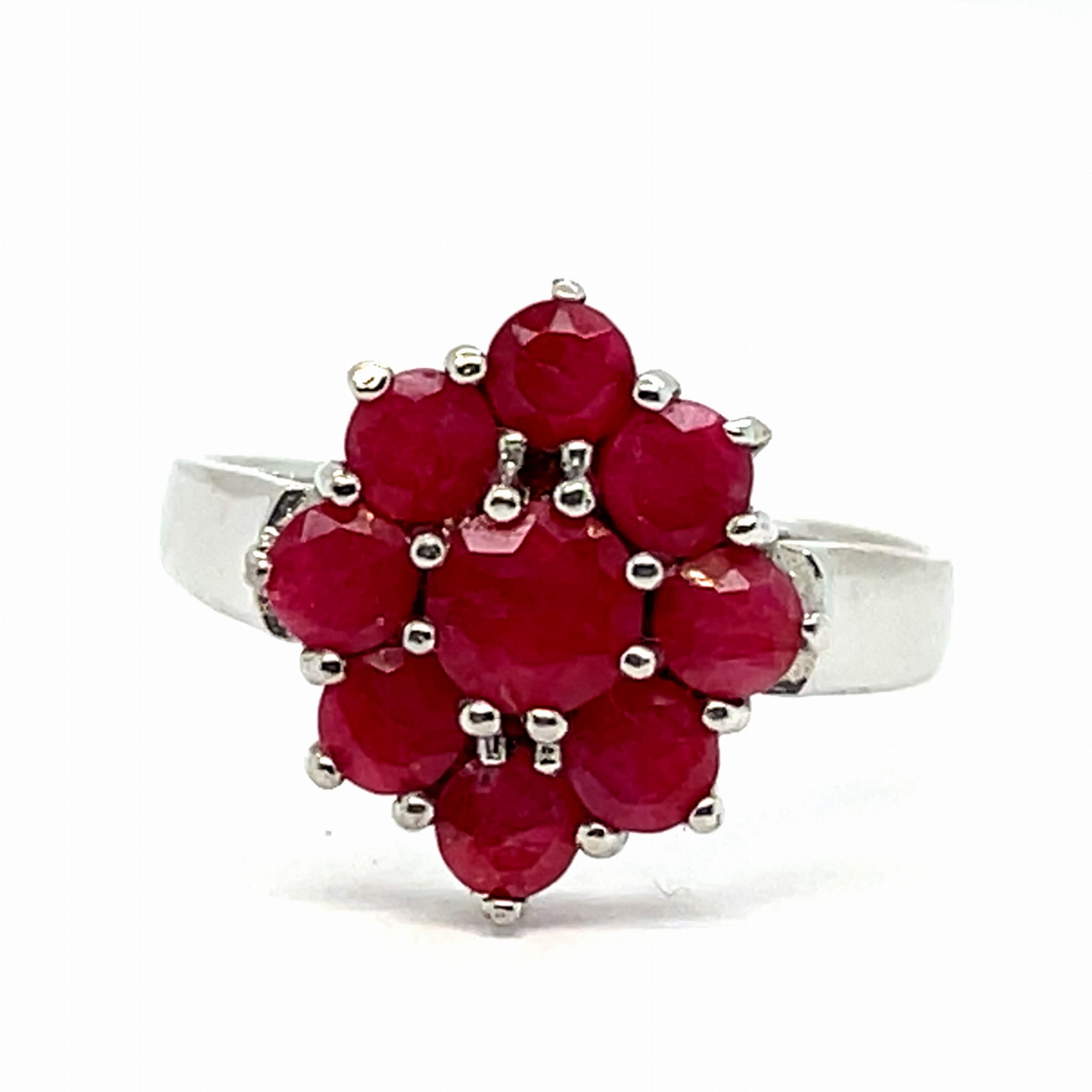 Srebrny Pierścionek Z Rubinami Kwiat 9 Kamieni Srebro 925